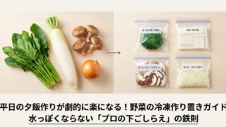 平日の夕飯作りが限界な30〜40代ワーママ必見!和包丁でのまとめ切りや圧力鍋活用など、食感と味を落とさず野菜を冷凍・作り置きするコツを実体験から徹底解説。きのこや里芋の正解を知れば料理が劇的にラクに!