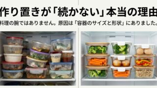 作り置きが失敗する原因は保存容器のサイズと形状にあり!忙しい共働き世代向けに、酸化や傷みを防ぎ、冷蔵庫の収納ストレスをゼロにする最適なタッパー・容器の選び方を徹底紹介。失敗しないコツがわかります。
