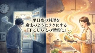 週末の作り置きに疲弊した共働き世帯必見!平日夜の夕飯作りを劇的に楽にする「下ごしらえの習慣化」メソッドを徹紹介。帰宅後15分ルールや下味冷凍のコツ、みじん切りを爆速化する時短キッチングッズなど、ズボラでも続く仕組み化の極意をお届けします。
