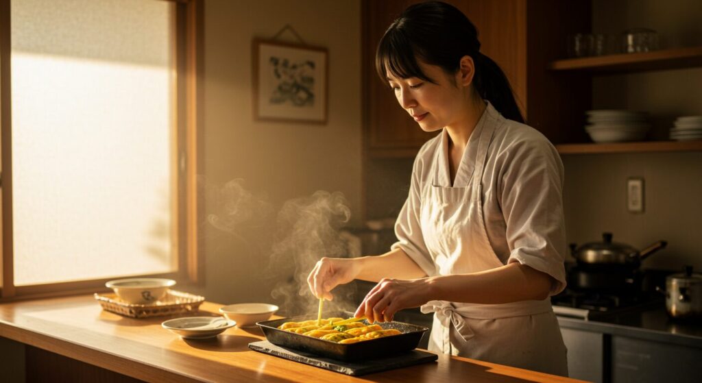 この卵焼きを初めて作った時、ごぼうの茎の切り方が粗くて、巻くときに破れてしまった失敗談があります。細かく切ることで、巻きやすくなり、食べやすさもアップすることを学びました。