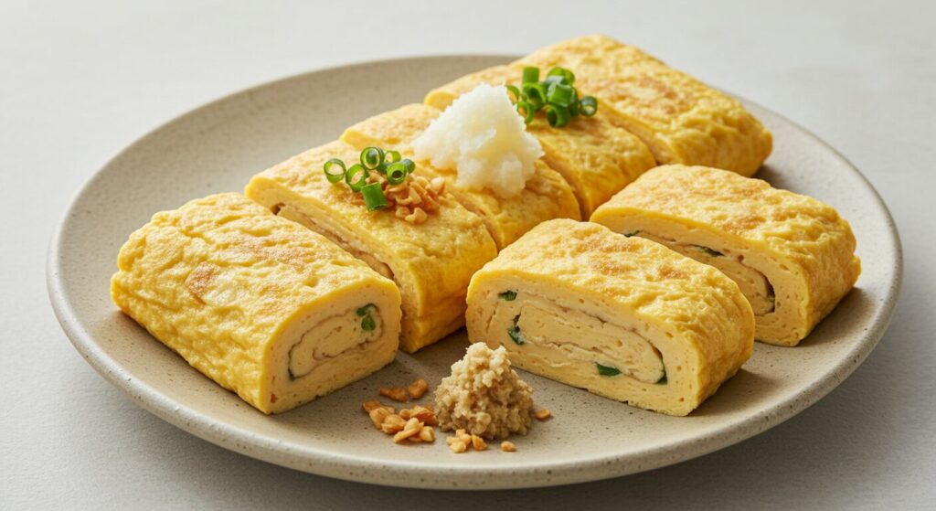 卵をよく溶き、カットしたニンニクの芽と調味料を混ぜたら、通常の卵焼きと同様に焼いていきます。芽のシャキッとした食感と、にんにくのほのかな香りが卵のやさしい味に絶妙にマッチし、冷めても美味しいためお弁当にも最適です。野菜を手軽に摂りたいときや、栄養バランスを考えた一品としてもおすすめのアレンジレシピです。