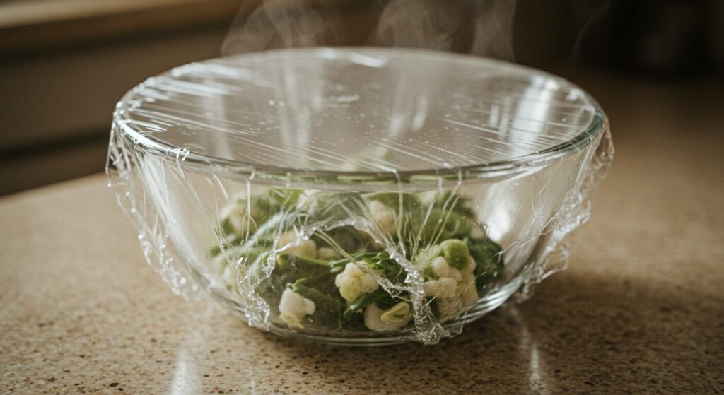 密閉しすぎたラップ | ふんわりラップで蒸気を軽く逃がす |