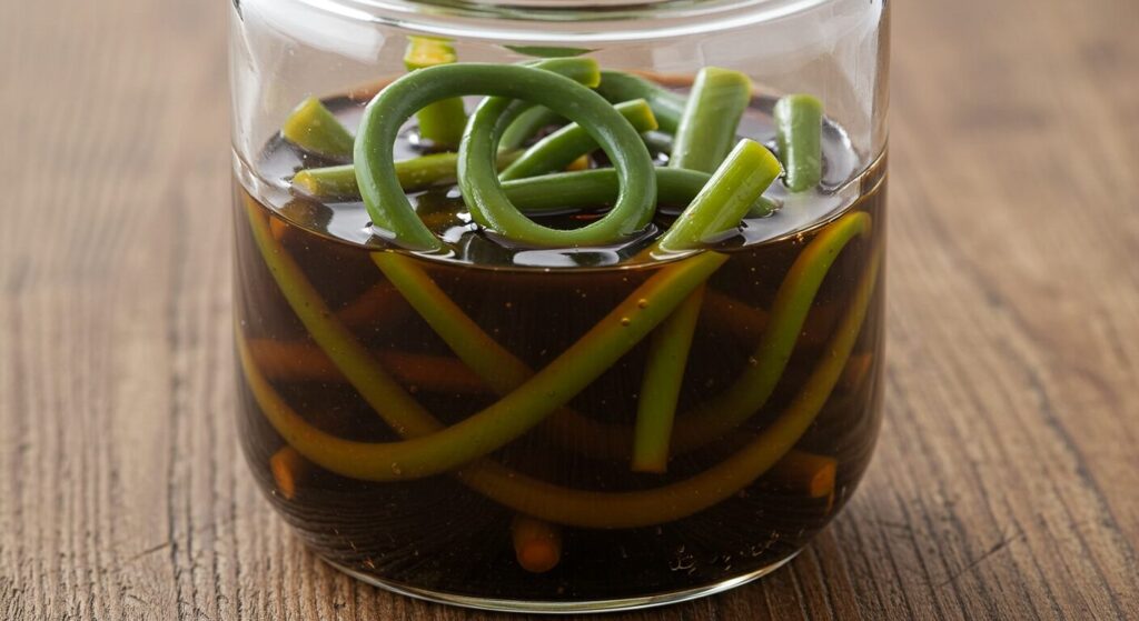 冷蔵庫の常備菜に!レンジで作るニンニクの芽の醤油漬け