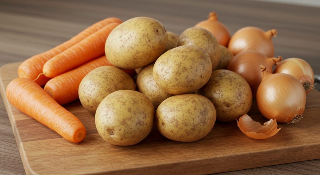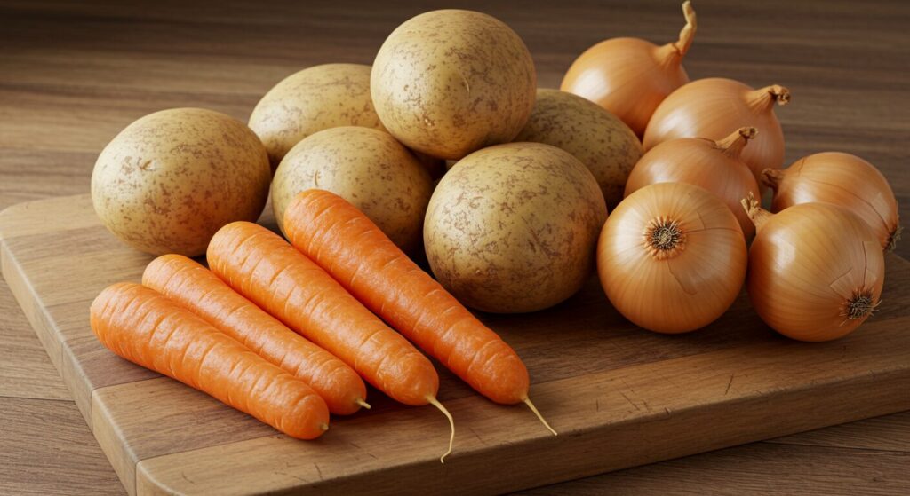 - 他の野菜との下処理順序 – 人参はじゃがいもより1-2分早く、玉ねぎ・セロリは炒めるのみ