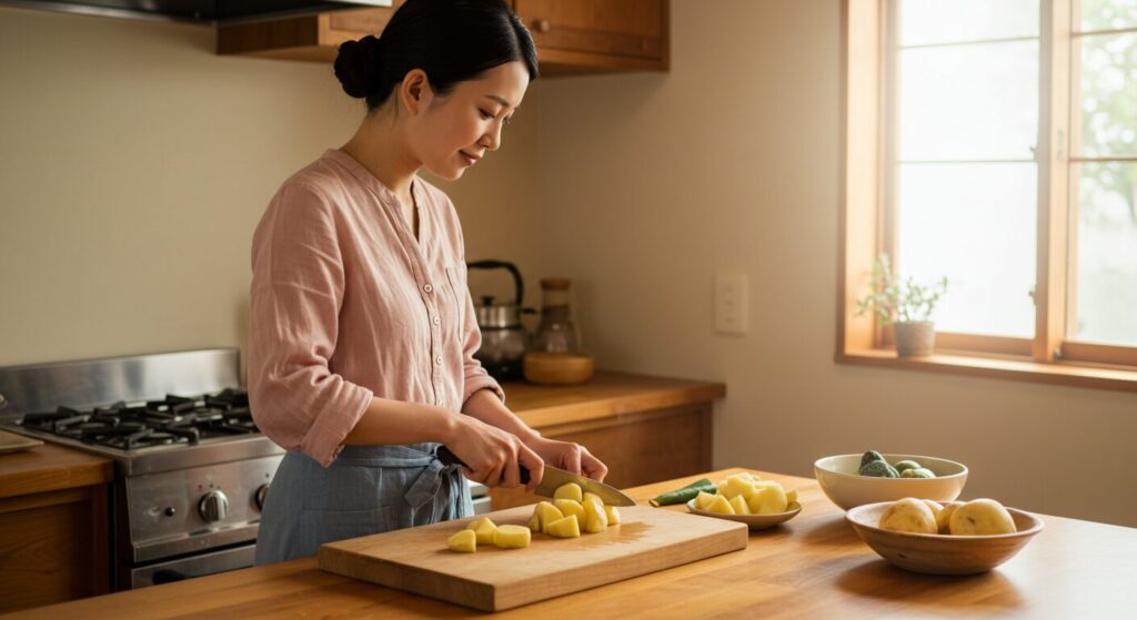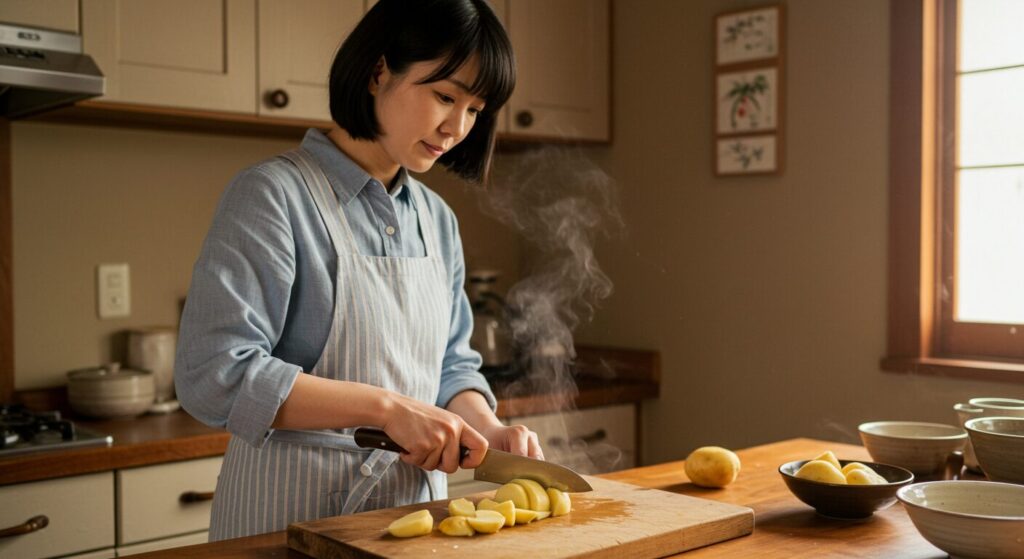 形についても工夫の余地があります。丸く切ったり、少し面取りを効かせた六角形にしたりすると、見た目にも楽しくなります。子どもたちは「今日のじゃがいも、まん丸で可愛い!」なんて言ってくれて、食事の時間がより楽しくなりました。